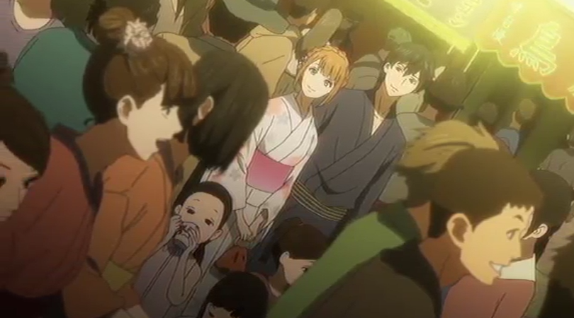 Naho consegue chegar ao local mas os fogos já cessaram. Apesar do atraso de Naho, o que chama a atenção de Kakeru é que ela está usando a presilha que ele a presenteou. Os dois continuam a interagir bem mesmo com o "imprevisto".
