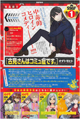 Há também o anúncio da Shin Sedai Sunday Granpix, competição para votação do melhor one-shot. É como a Golden Future Cup da Weekly Shounen Jump. O primeiro one-shot será Furumi-san wa Commu-shou Desu, de Oda Tomohito.